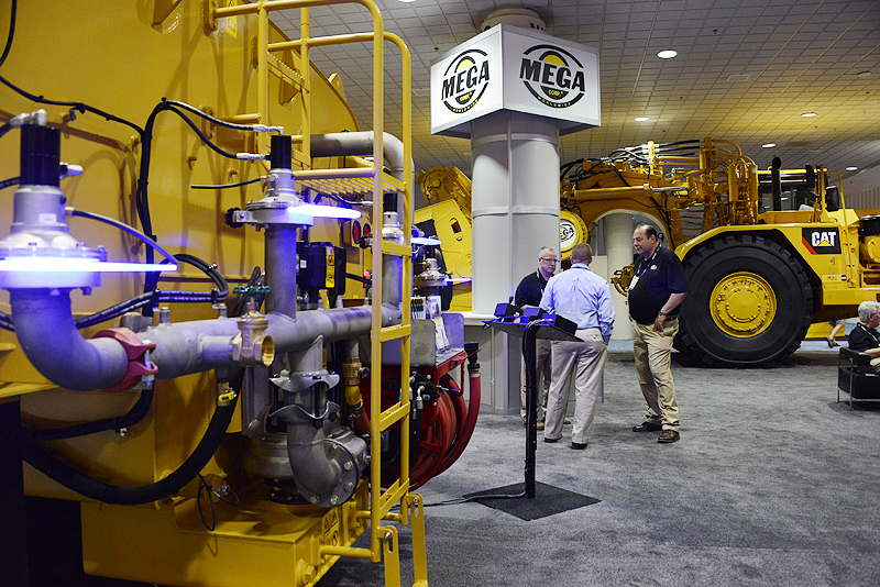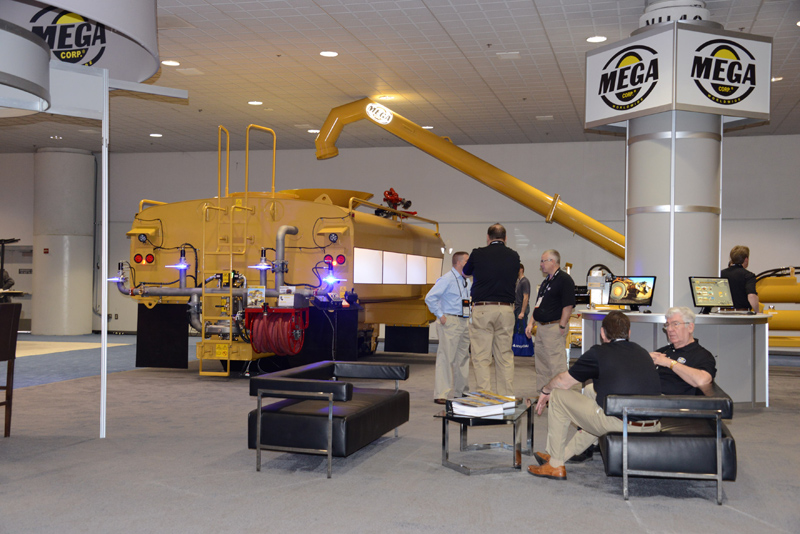 Caterpillar, Komatsu, Volvo, Hitachi, and just about anybody else that makes construction equipment was there. The major manufacturers showed up with multi-million dollar stage lighting displays, 20’x40’ HD screens, a room that does motion tracking for each person as they walk into the room, complete motion simulator tractors. We are a small manufacturer in the show. I felt the lighting helped us show the merits Mega has to offer without spending millions.