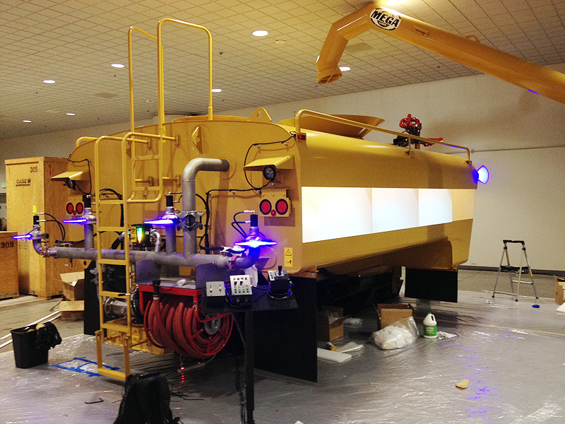 Thanks for the help with the lighting display. The show was a total success. We were able to highlight features of our tank better than ever before. I appreciate your help. I attached a few pictures of our booth and the tank lighting.